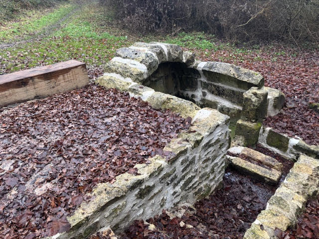 Cette source se situe à une centaine de mètres au-dessus du parking en empruntant un petit sentier juste après le dernier virage de la route d’accès (en face du practice). Elle a également été récemment dégagée par les services municipaux.