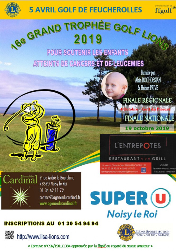 Dans le cadre du 16éme Grand Trophée LIONS 2019, je vous informe que le Lions Club de Noisy le Roi /Bailly organise le 5 Avril sur le parcours de l'EXCLUSIV Golf de Feucherolles, une compétition en stableford enregistrée à la FFG, pour le 1er tour de qualification régionale.