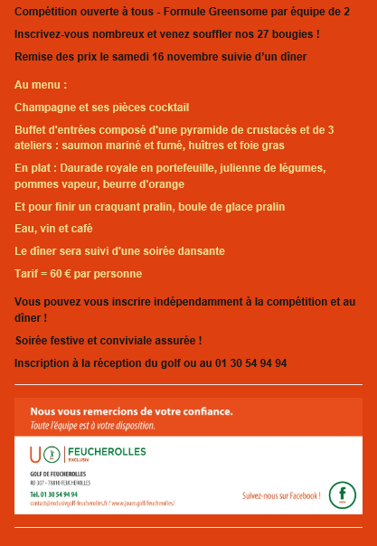 Soirée Anniversaire du Club Posté le 16/11/2019 - Par François Bouloc COMPÉTITIONS UGOLF FEUCHEROLLES
