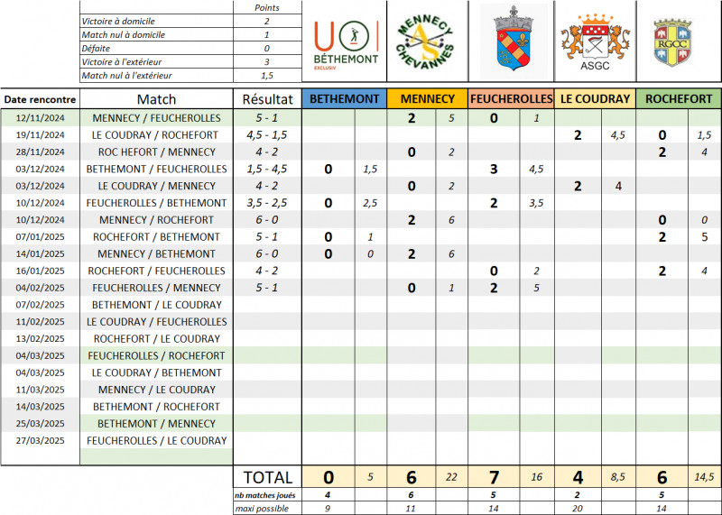 Avec notre classement actuel, 3 victoires et Feucherolles pourrait terminer 1er cette année............